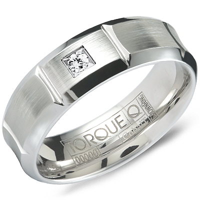 This outstanding white cobalt Torque with line detailing and eight black sapphires is bold and unique.